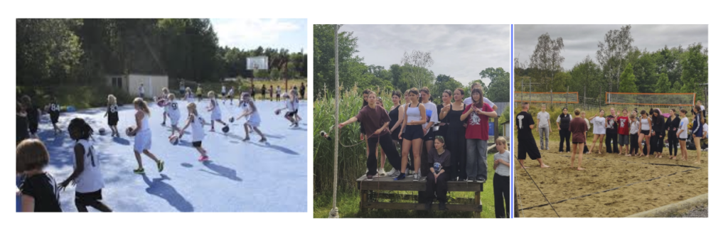 På lägerplatsen så finns det 2 basketplaner, 2 beachvolleyboll planer och en äventyrsbana som vi har tillgång till under hela lägret.